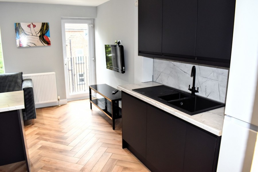 The second floor offers a spacious open plan lounge and kitchen and a large roof terrace.